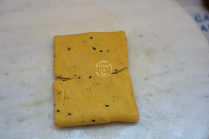 9. Finally fold at the center so that the dough looks like a folded kerchief.