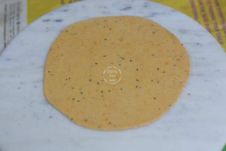 It is really simple to make Khasta Ajwain Poori at home, just a few ingredeints – whole wheat flour, ajwain/carom seeds, red chilli powder, turmeric powder, salt and water. It is a nice variation to the plain pooris that most of us make at home. These Ajwain Pooris are crispier than the usual poori and are perfect to dunk into some semoi-watery gravy. These are perfect on their own with some hot ginger tea too!