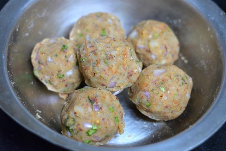 - Make 6 equal sized balls of the dough and the stuffing.