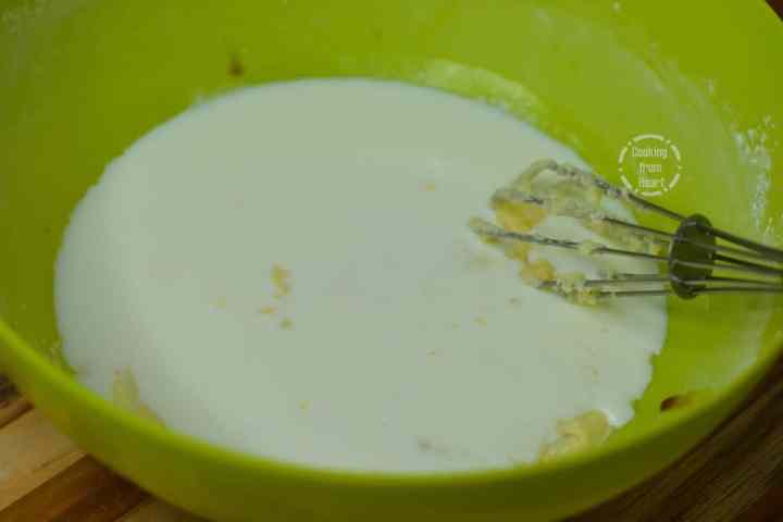 - Now add ¾ cup milk (at room temperature) & ¼ teaspoon vanilla extract and mix again.