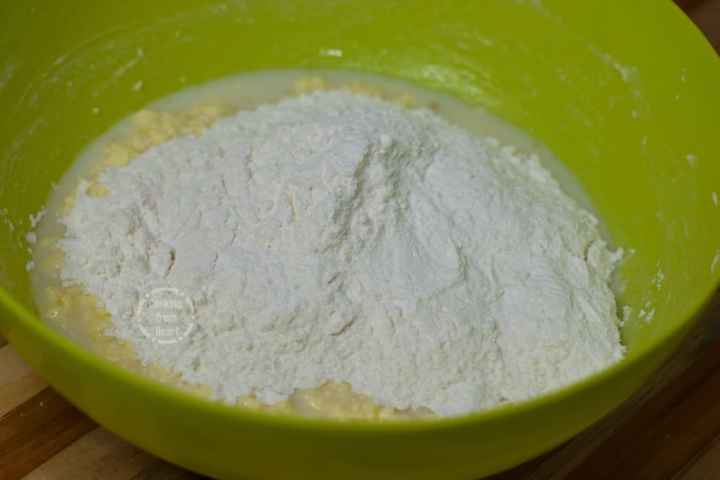 - Add the flour mixture in to the wet mixture in equal parts.