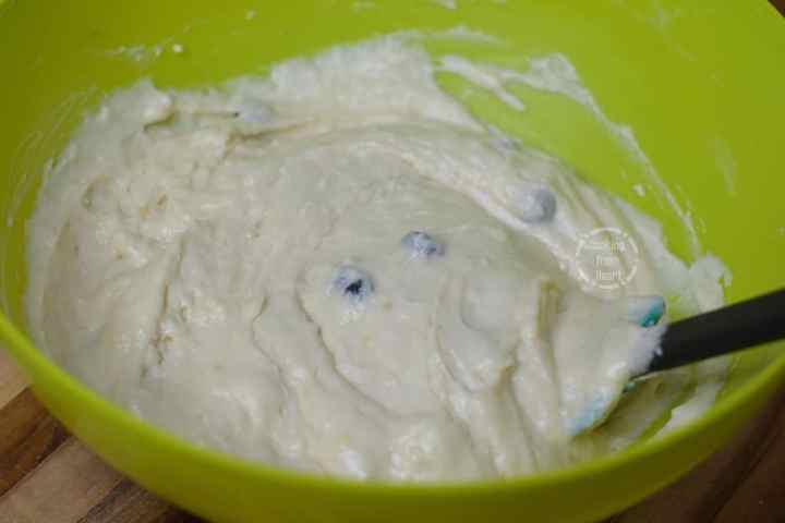 Add ⅓ cup dried blueberries. (If you want to add some blueberries on top, reserve them before adding to the batter)