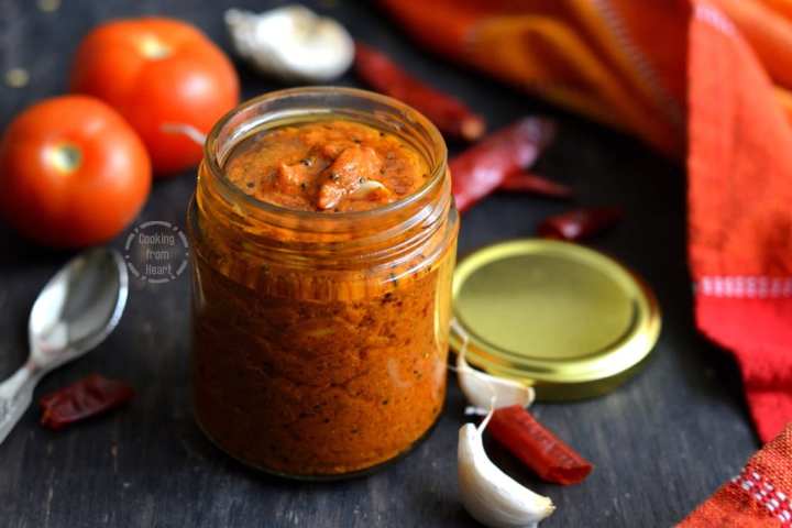 Make authentic Andhra style Tomato Avakaya pickle recipe, goes well with hot rice, idli or dosa. Instant Tomato Pickle recipe Andhra style.