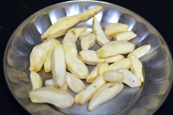 1. Wash and clean the mango ginger. Scrape off the skin and pat them dry.