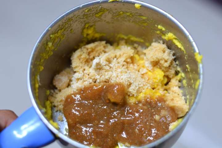 4. Add powdered jaggery and tamarind pulp. Pulse again for 1 or 2 times.