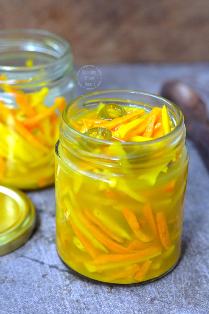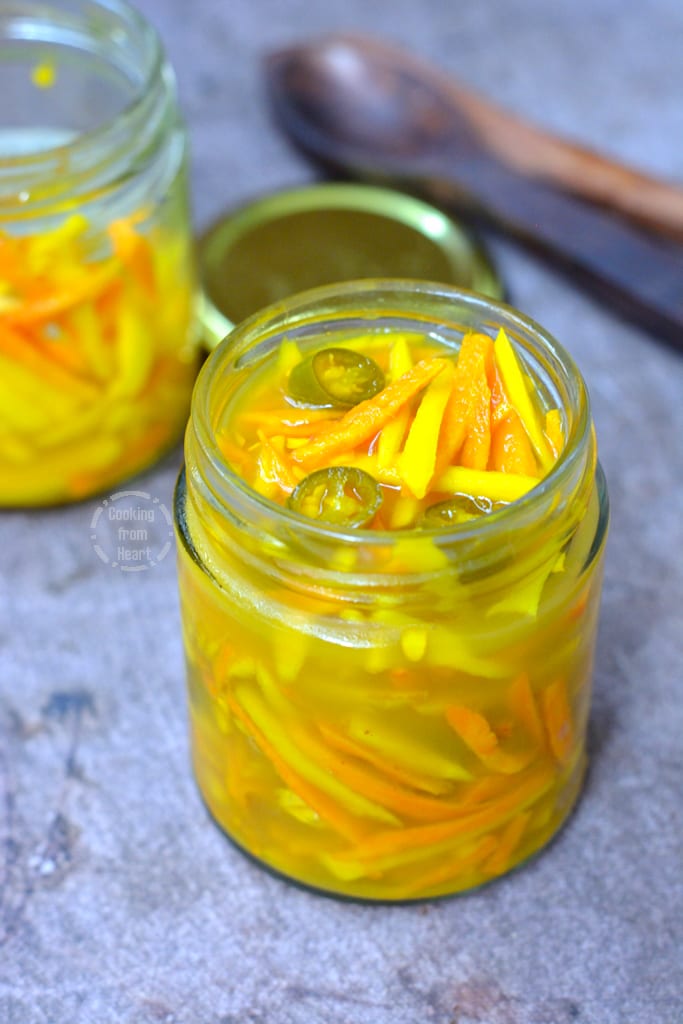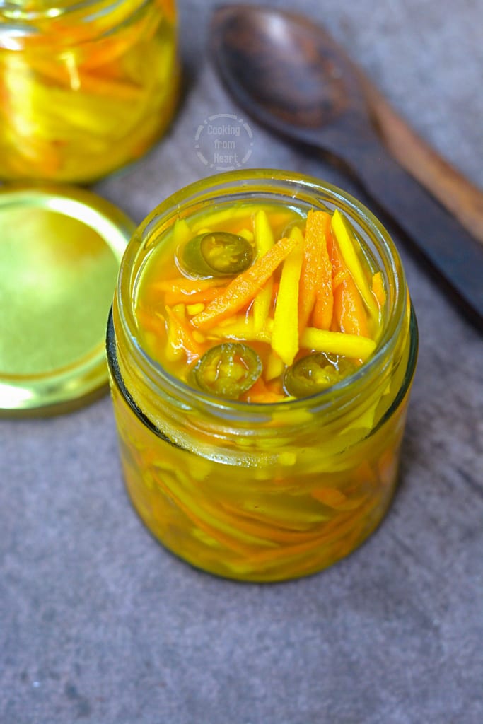 This is a very unique version of the turmeric pickle when compared to a traditional turmeric pickle.