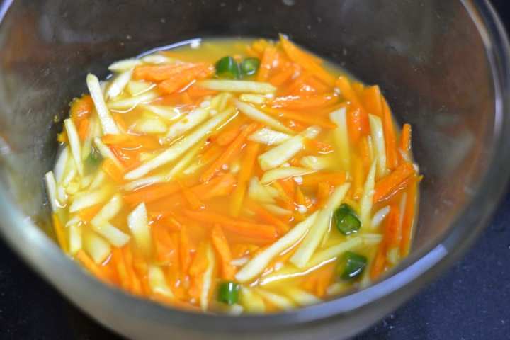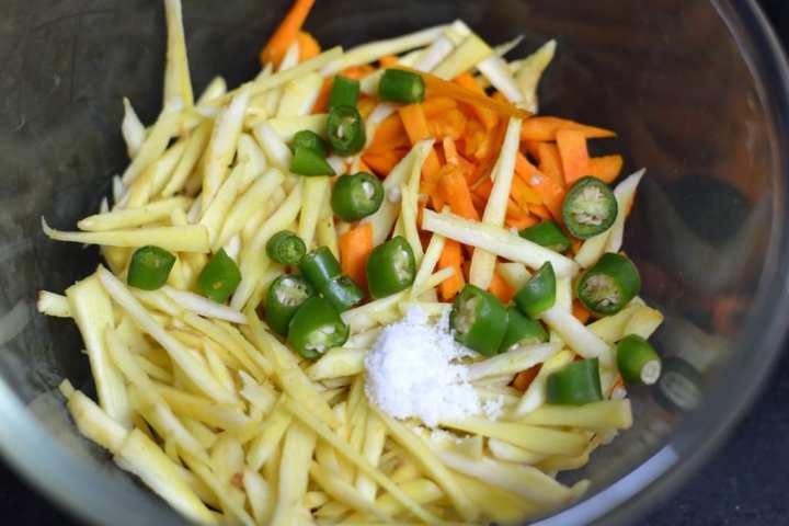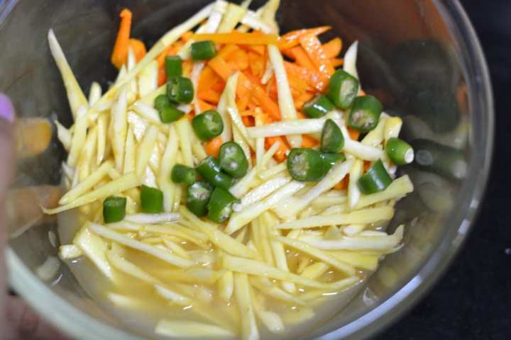 Mix well and make sure lemon juice covers the pieces. Keep it closed and rest for two days. You can also place the bowl covered with a muslin cloth in sunlight.