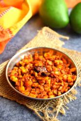 Mamidikaya Mukkala Pachadi tastes best as a side dish or accompaniment to curd rice, sambar rice, rasam rice and it can also be mixed with hot rice & ghee. It must be stored in fridge in an airtight glass jar for upto 15-20 days. Always use a clean, dry spoon to take the pickle out.