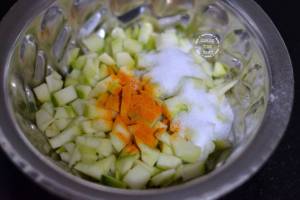 Add 1 teaspoon salt and ¼ teaspoon turmeric powder.