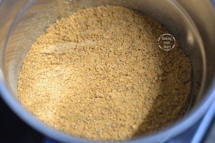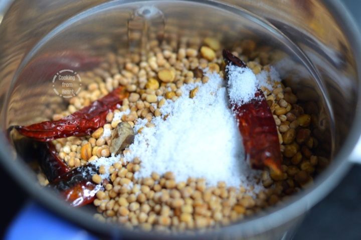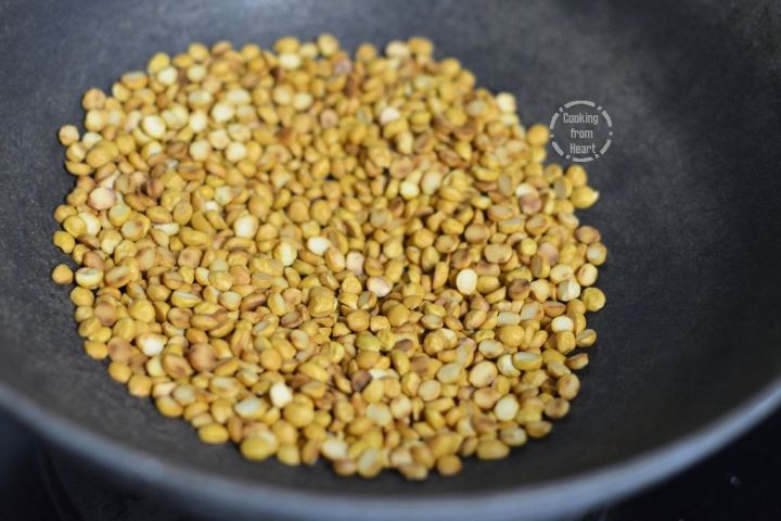 As different pulses/legumes take different times to get roasted and turn golden brown, it is essential to roast each of them individually. Do not be in a haste to roast them, slow roasting is key.