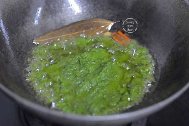- Cook on low flame for 10-12 mins until there is no raw smell and oil starts to ooze out from the edges.
