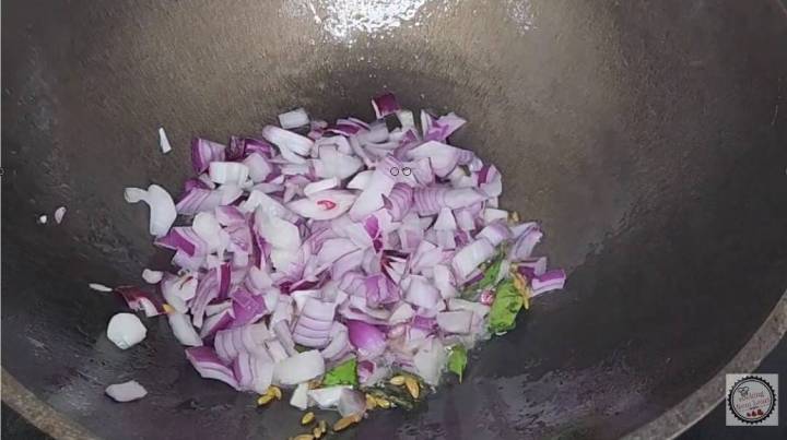 - Next add 1 onion finely chopped. Fry until translucent.