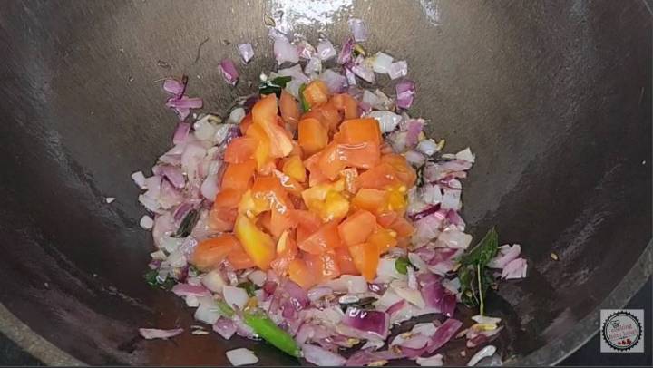 - Now add 1 tomato finely chopped. Cook them until mushy.