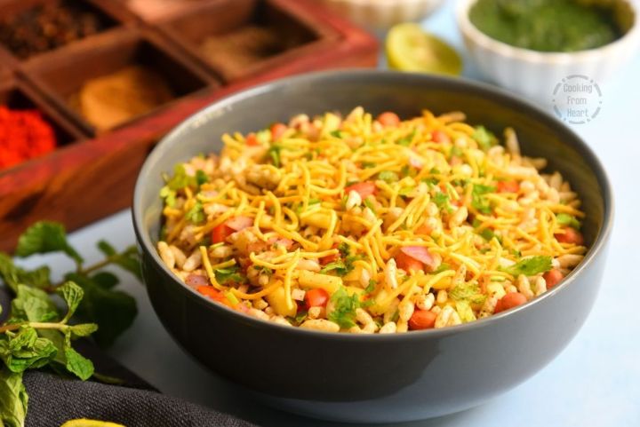 In addition to the spicy green chutney, you can also add 1-2 teaspoon of sweet tamarind chutney to the bhel if you prefer.