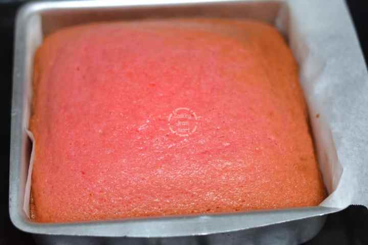 Rose Essence or Syrup is used to flavor the cake. Alternatively, you can use Rooh Afza too for an added rose flavor.