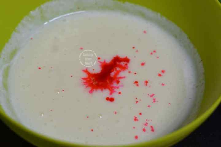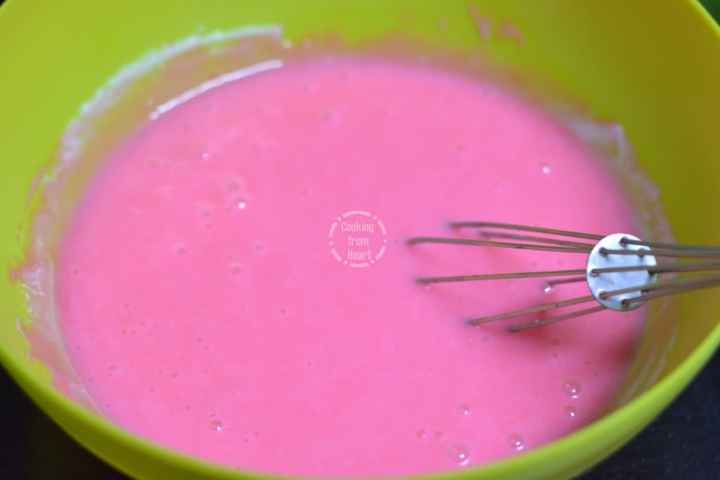 - ¼ teaspoon Pink Food Color + 3 to 4 drops Tomato Red Food Color