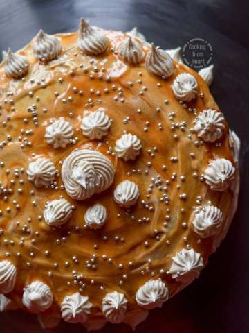 Eggless Caramel Cake with Salted Caramel Frosting
